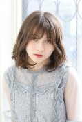 大人美髪ミディアムレイヤーボブ!少し長めの前髪に柔らかいカールをつけてボリュームのあるスタイル。ベースのカットは鎖骨ラインのミディアムの長さ。あまり短すぎないのでスタイルチェンジするにも挑戦しやすい!量もすいているので日々のケアも簡単!
