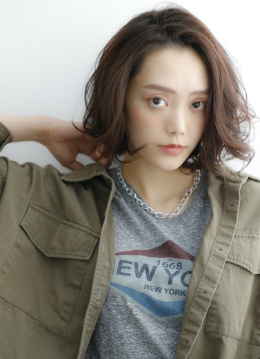 MEDIUM毛先パーマでナチュラルかきあげボブ