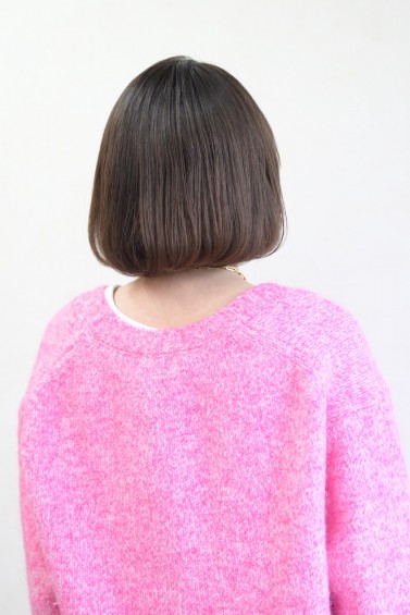 アゴラインの前下がりボブ。丸みシルエットのボブに、ベージュブラウンが重く見えがちな硬い髪も柔らかく見えます。20代30代40代50代と幅広い年齢のお客様にご来店して頂いてます。